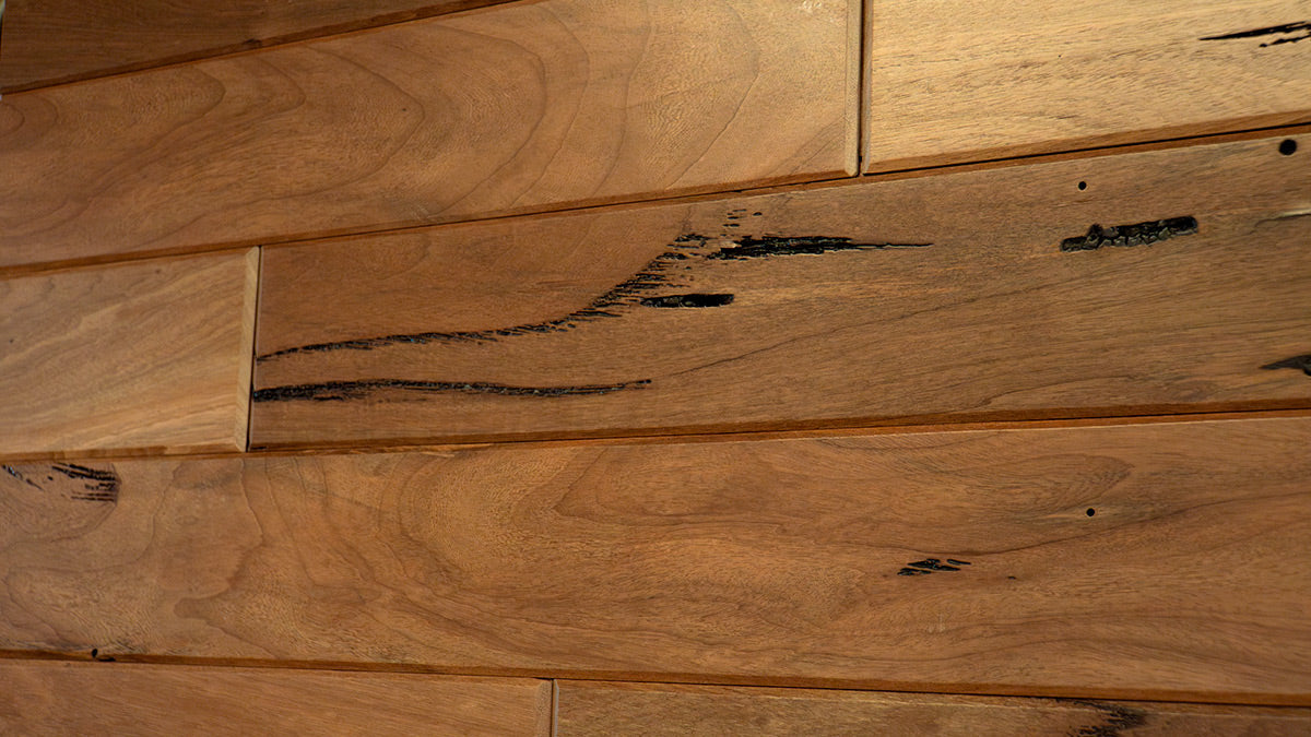 1 x 4 End-Matched 60° V-Joint Pecky Bolivian Walnut, Prefinished