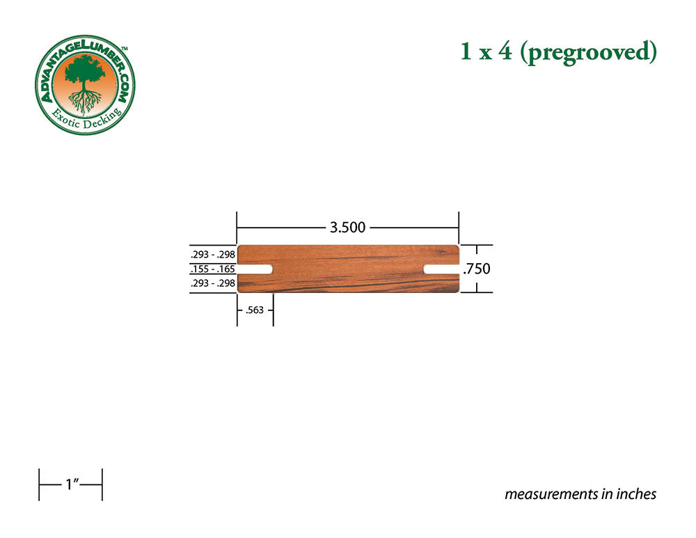 1x4 Pre-Grooved Tigerwood Decking 6'-18' |
