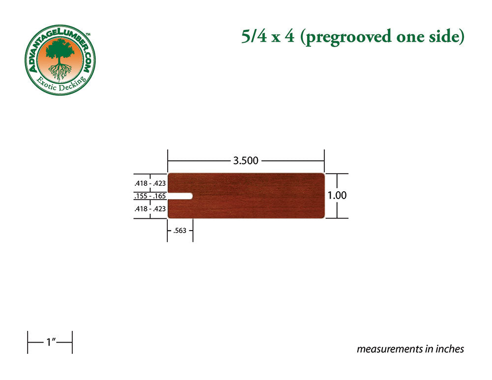 5/4 x 4 Brazilian Redwood (Massaranduba) Wood One Sided Pre-Grooved Decking