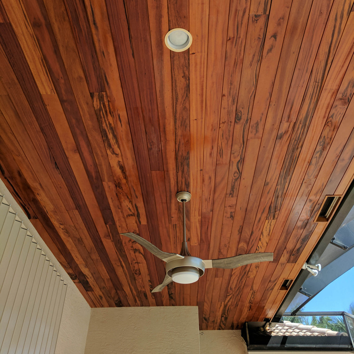 5/4"x6" Tigerwood V-Groove ceiling is great for people who want to build a spectacular sunroom. This exotic hardwood’s soft golden-brown hues and dark contrasting streaks will make your new porch or covered patio a real eye-opener.