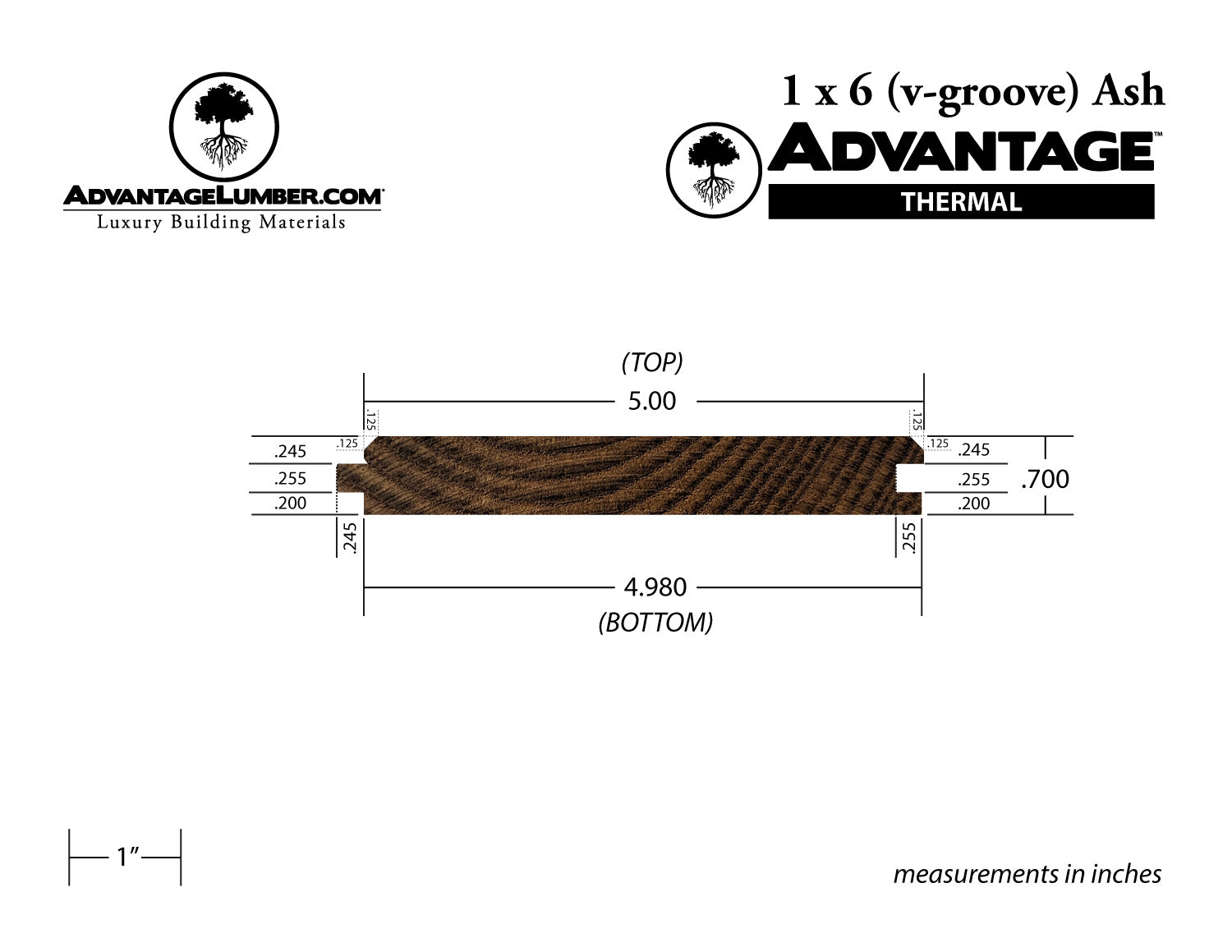 Advantage Thermo Modified Ash, 1x6 V-Groove