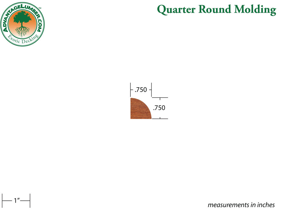 Our Cumaru quarter round molding measure ¾″ x ¾″