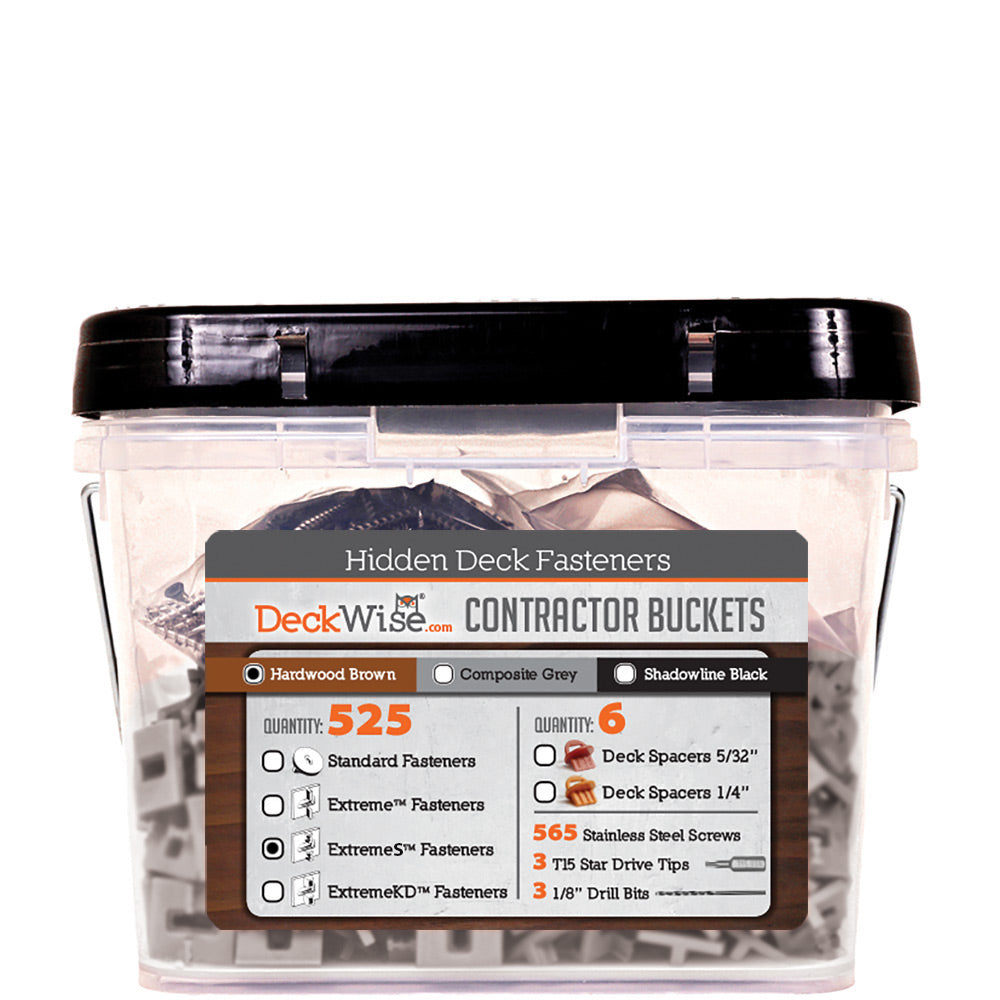 The DeckWise® 525 Contractor Bucket comes with all the deck-building hardware you need: