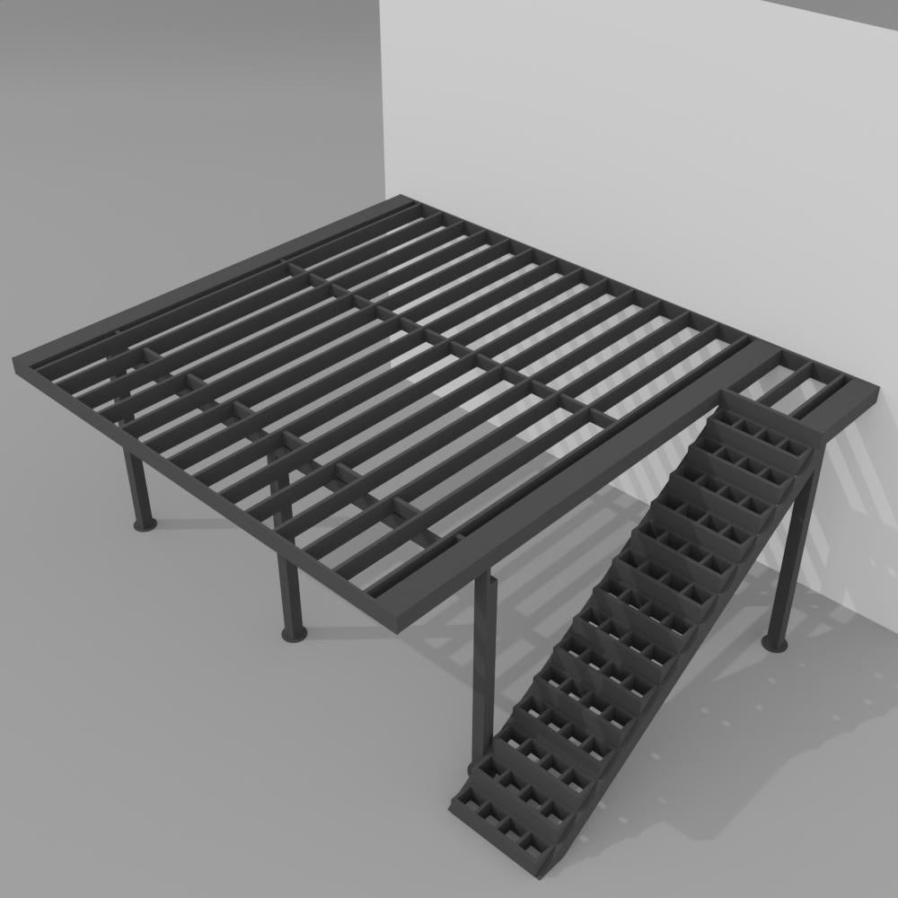 This kit contains enough components to build an elevated 20x20 New Castle Steel deck frame, including stairs with a 4x4 landing, that is up to 8′9″ high: