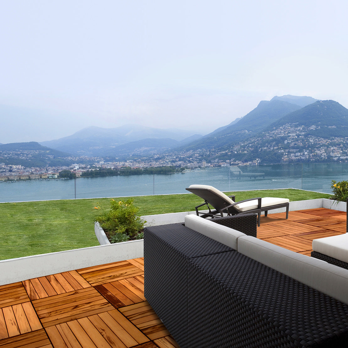 Tigerwood Deck Tiles are the perfect fit for rooftop deck, concrete patios, balconies and heavy-duty commercial applications.