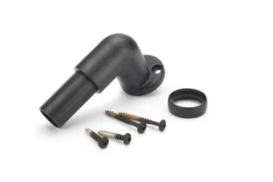 The wall return is a bracket with integrated connector that terminates an ADA handrail run. This is a cast aluminum part that is powder coated for long lasting beauty and durability.