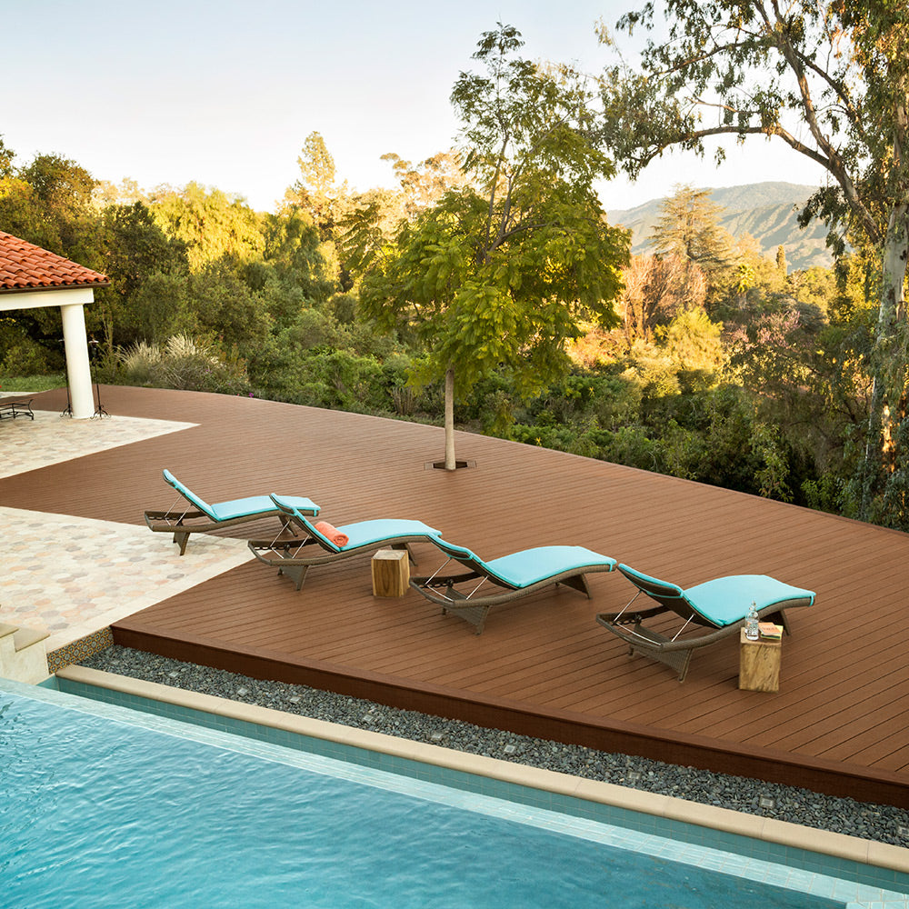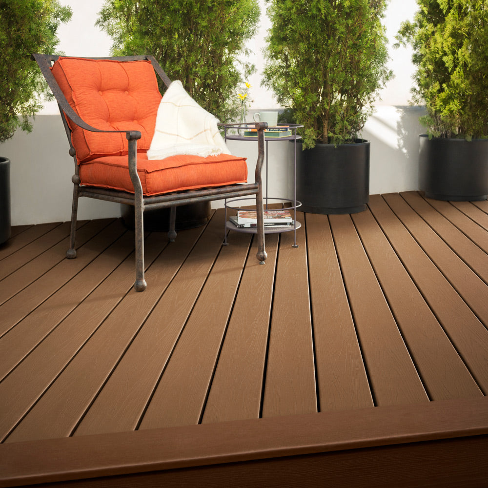Enhance decking boards are scalloped, making them as lightweight as lumber—without the extra work. This long-lasting decking requires little upkeep and comes in seven colors.