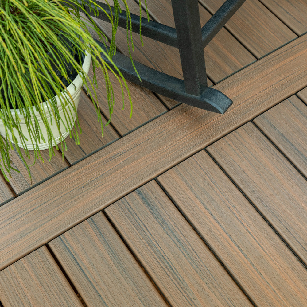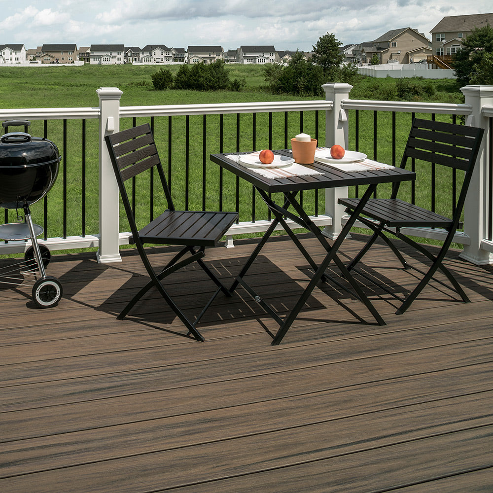 Enhance decking boards are scalloped, making them as lightweight as lumber—without the extra work. This long-lasting decking requires little upkeep and comes in seven colors.